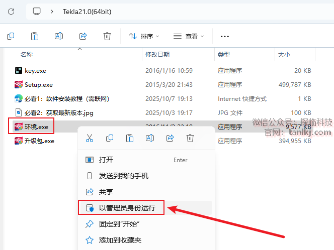 回到之前解压后的文件夹中,右键程序【环境】,点击【以管理员身份运行】。