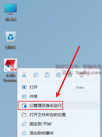 在桌面,右键软件【Tekla Structures 2016】,点击【打开文件所在的位置】。