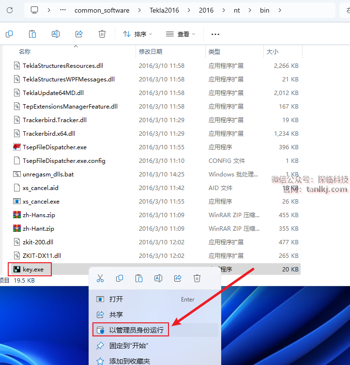 右键刚刚粘贴的文件【key】,点击【以管理员身份运行】。