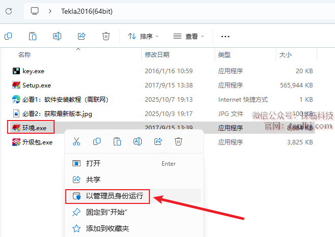 回到之前解压后的文件夹中,右键程序【环境】,点击【以管理员身份运行】。