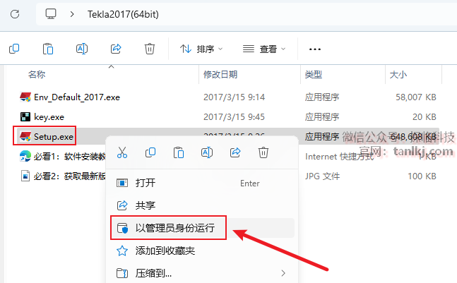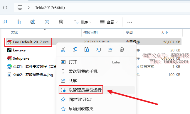 回到之前解压后的文件夹中,右键程序【Env_Default_2017】,点击【以管理员身份运行】。