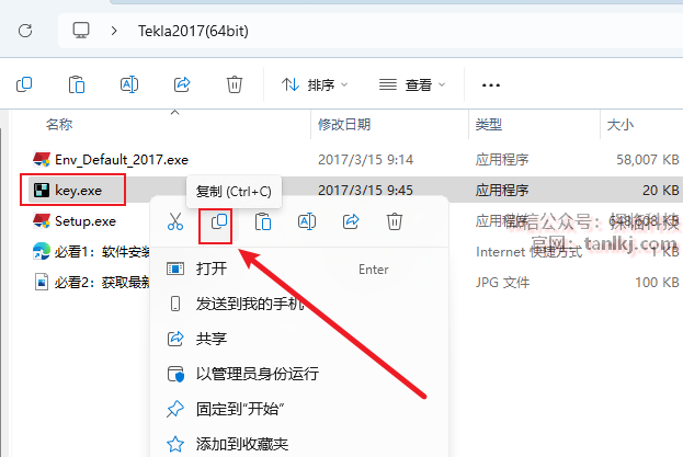 回到之前解压后的文件夹中,复制程序【key】。