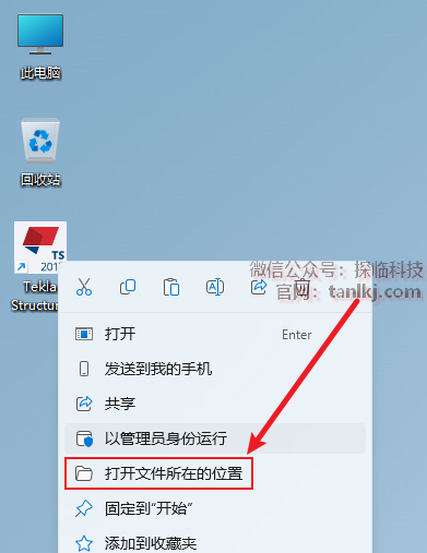 在桌面,右键软件【Tekla Structures 2017】,点击【打开文件所在的位置】。