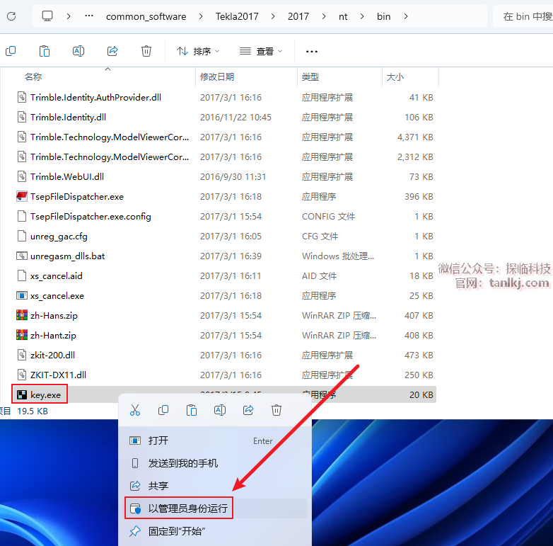 右键刚刚粘贴的文件【key】,点击【以管理员身份运行】。