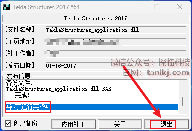 提示:补丁运行完毕后,点击【退出】。