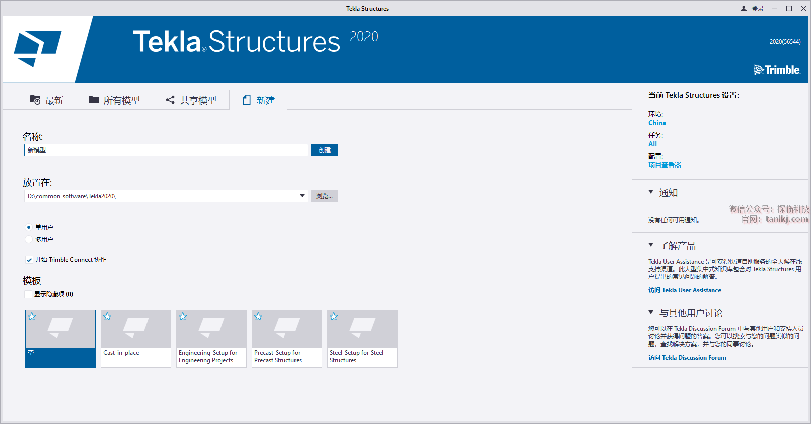 在桌面,双击运行软件【Tekla Structures 2020】。