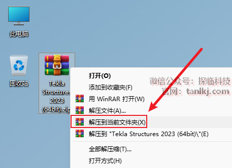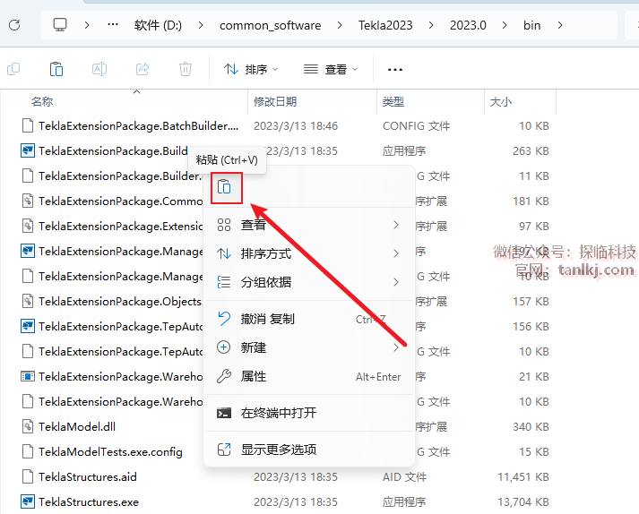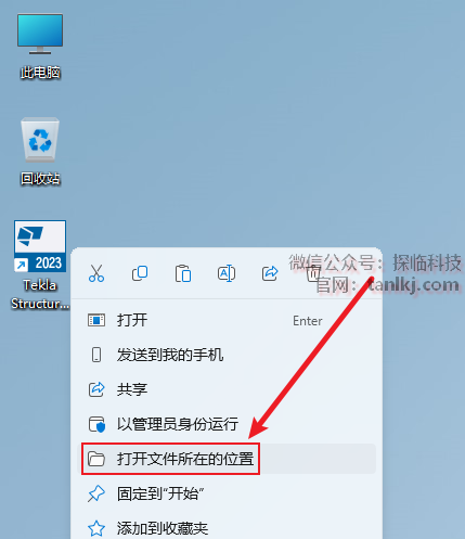 在桌面,右键软件【Tekla Structures 2023】,点击【打开文件所在的位置】。