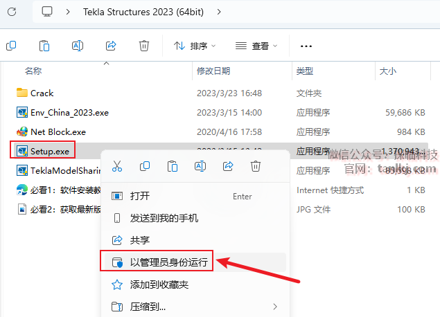 打开解压后的文件夹,右键程序【Setup】,点击【以管理员身份运行】。