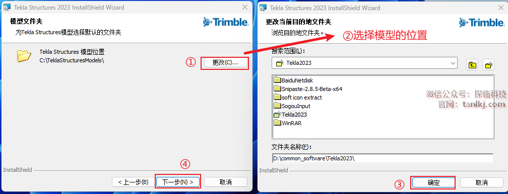 更改模型的位置,如不需更改,直接点击【下一步】即可。