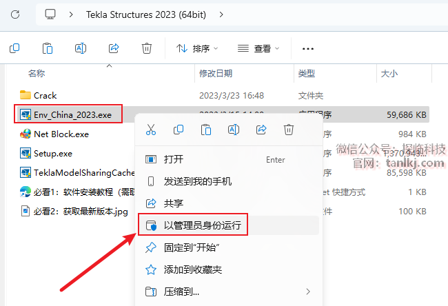 回到之前解压后的文件夹中,右键程序【Env_China_2023】,点击【以管理员身份运行】。