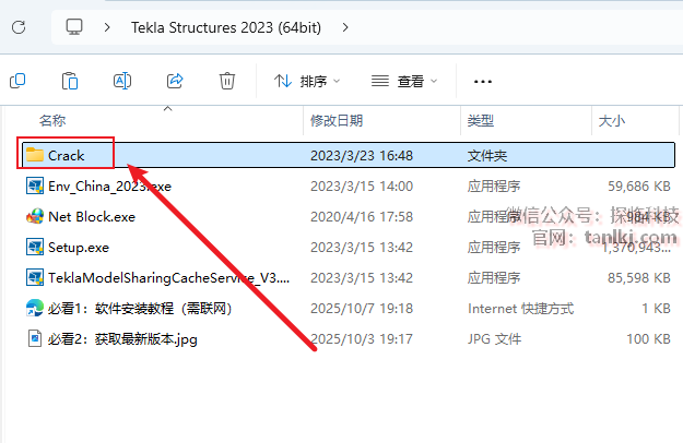回到之前解压后的文件夹中,双击打开文件夹【Crack】。