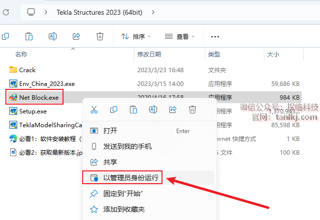 回到之前解压后的文件夹中,右键程序【Net Block】,点击【以管理员身份运行】。
