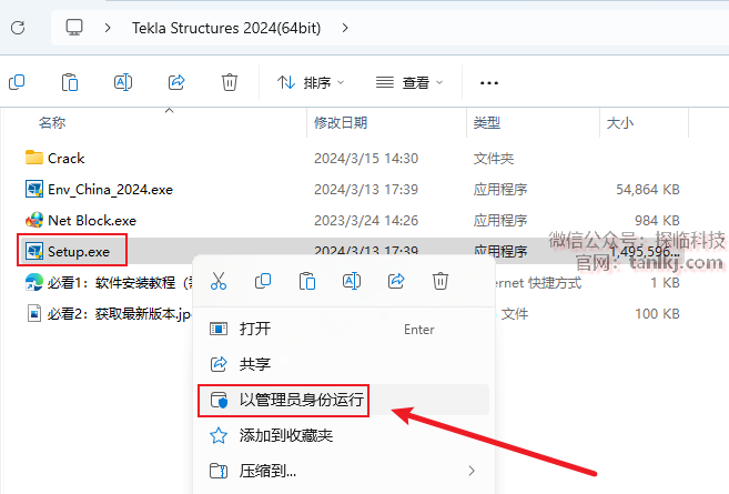 打开解压后的文件夹,右键程序【Setup】,点击【以管理员身份运行】。
