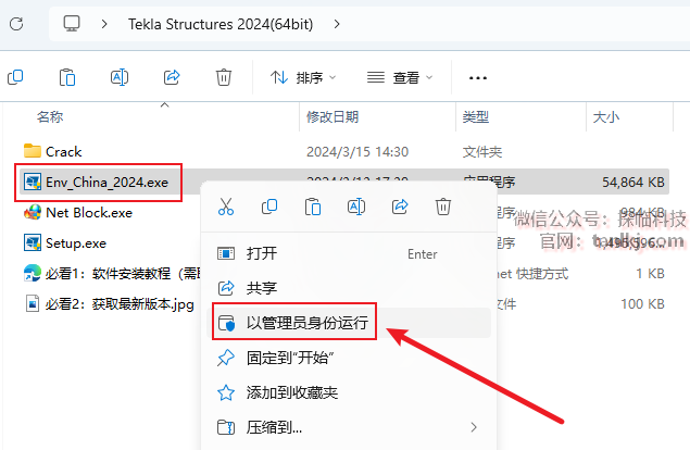 回到之前解压后的文件夹中,右键程序【Env_China_2024】,点击【以管理员身份运行】。