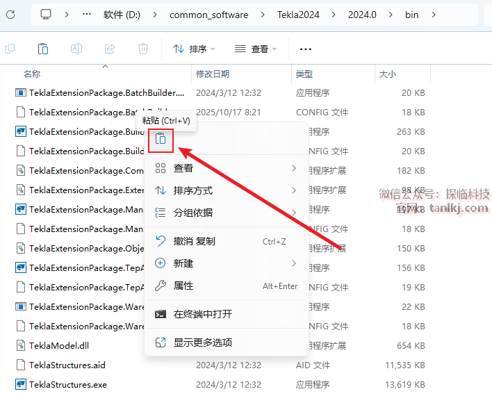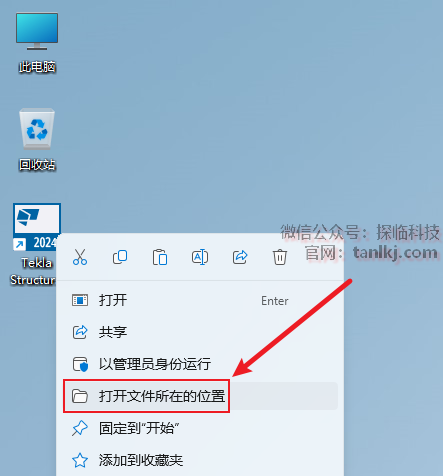 在桌面,右键软件【Tekla Structures 2024】,点击【打开文件所在的位置】。