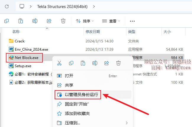回到之前解压后的文件夹中,右键程序【Net Block】,点击【以管理员身份运行】。