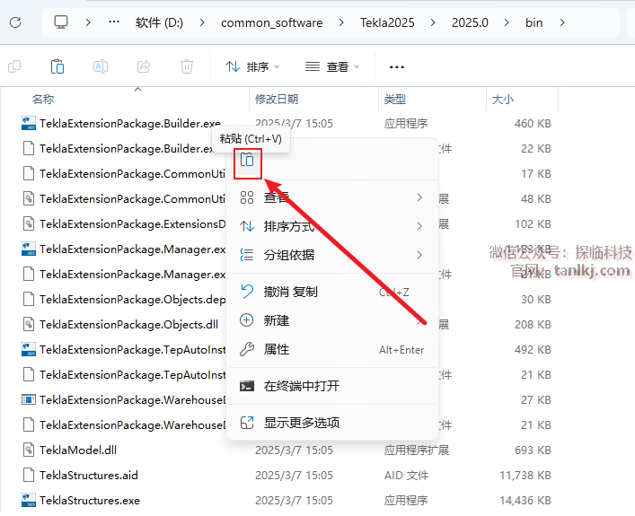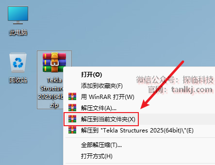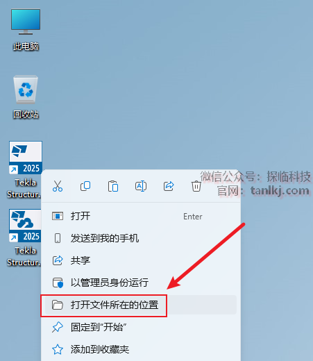 在桌面,右键软件【Tekla Structures 2025】,点击【打开文件所在的位置】。