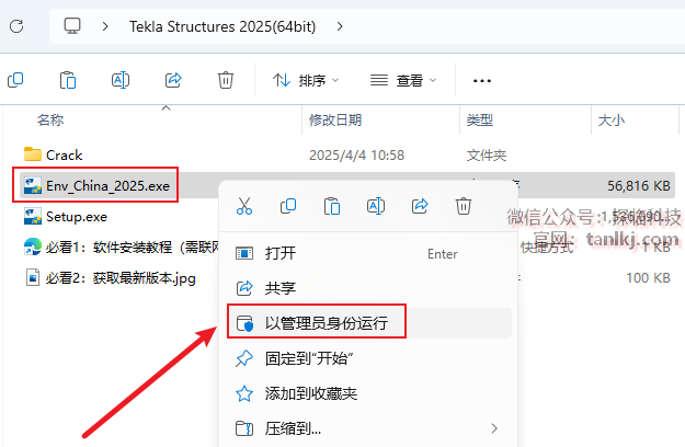 回到之前解压后的文件夹中,右键程序【Env_China_2025】,点击【以管理员身份运行】。