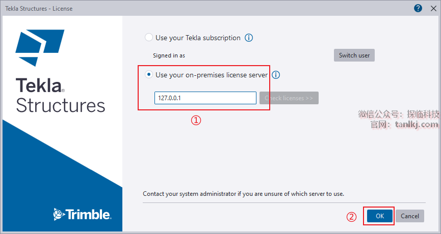 ①勾选【Use your on-premises license server】,并输入:127.0.0.1