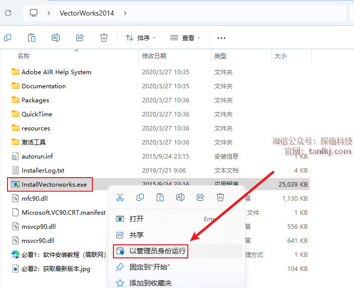 打开解压后的文件夹,右键程序【InstallVectorworks】,点击【以管理员身份运行】。