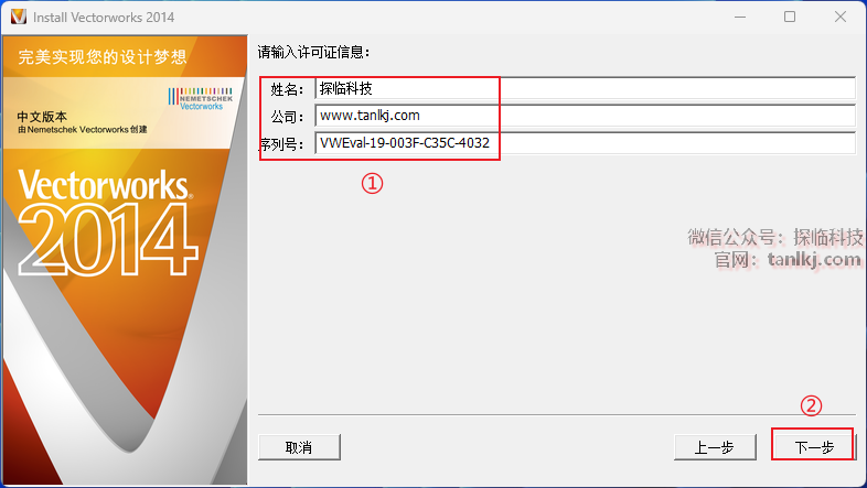 ①输入姓名、公司(可随意输入)和序列号:VWEval-19-003F-C35C-4032