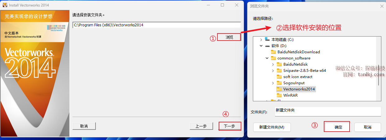 ②选择软件安装的位置,安装路径中不能包含任何中文字符;