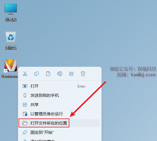 在桌面,右键软件【Vectorworks2014】,点击【打开文件所在的位置】。