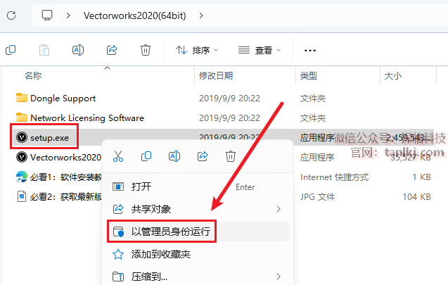 打开解压后的文件夹,右键程序【setup】,点击【以管理员身份运行】。