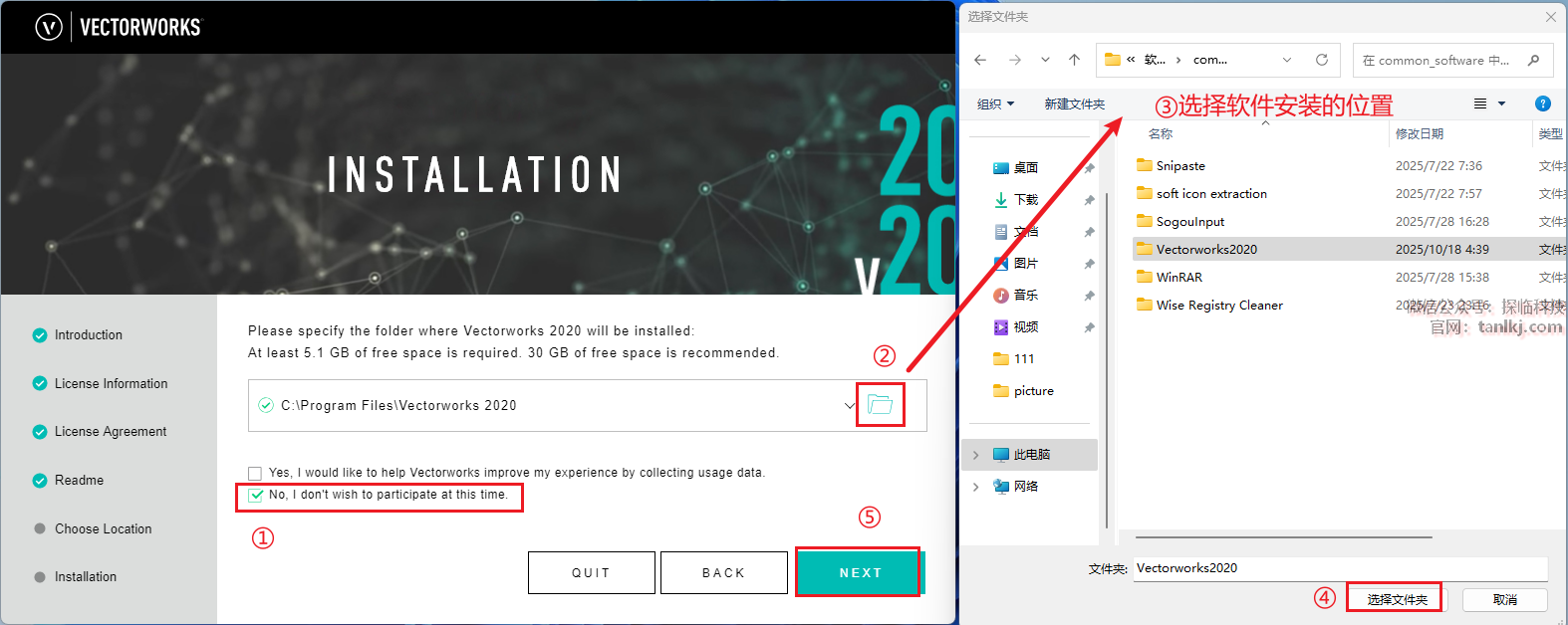 ③选择软件安装的位置,安装路径中不能包含任何中文字符;