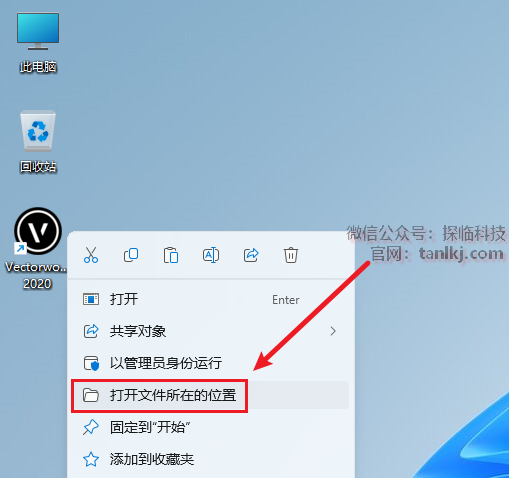 在桌面,右键软件【Vectorworks2020】,点击【打开文件所在的位置】。
