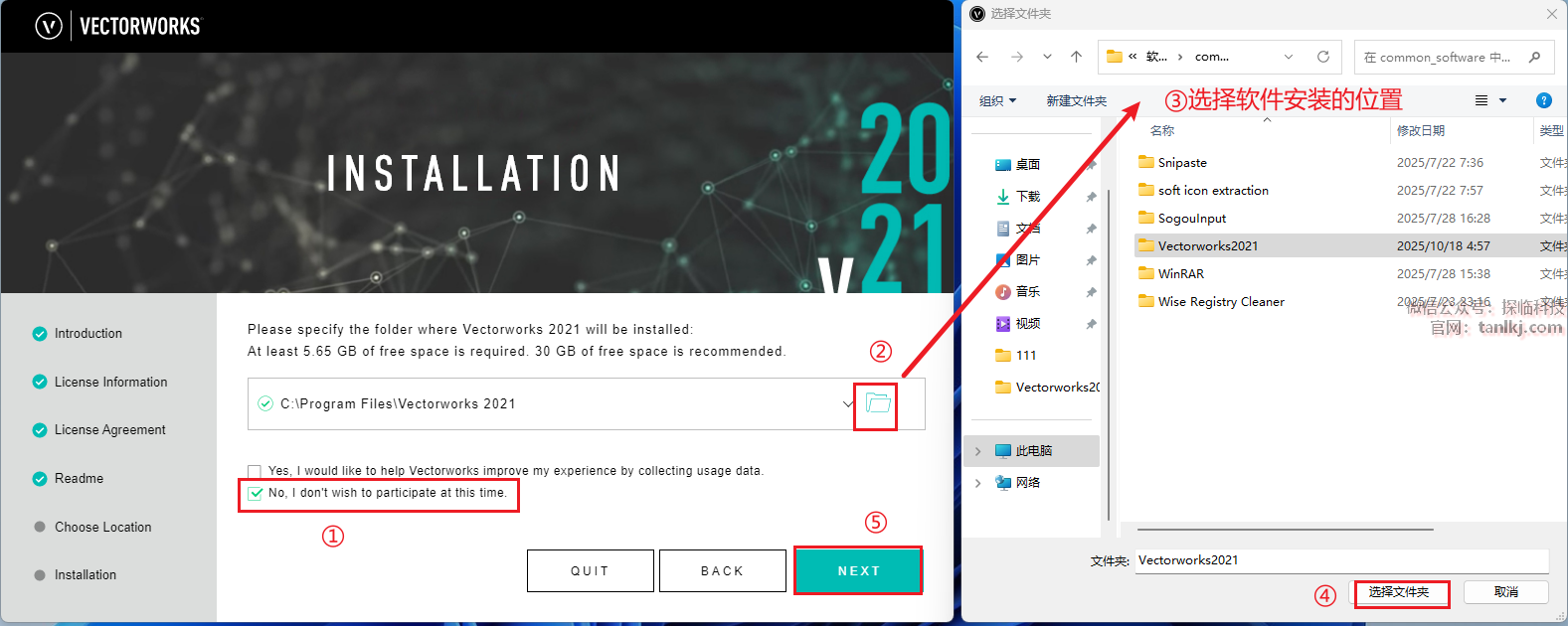 ③选择软件安装的位置,安装路径中不能包含任何中文字符;