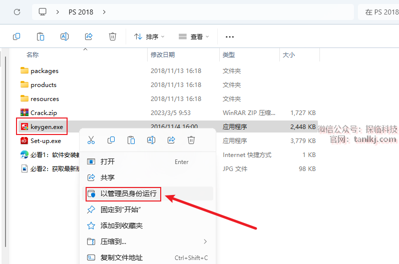 右键解压出来的文件【keygen】,点击【以管理员身份运行】。