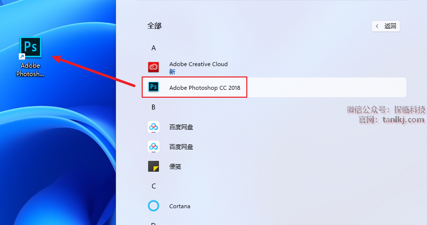 找到软件【Adobe Photoshop CC 2018】,将其拖至桌面创建快捷方式。