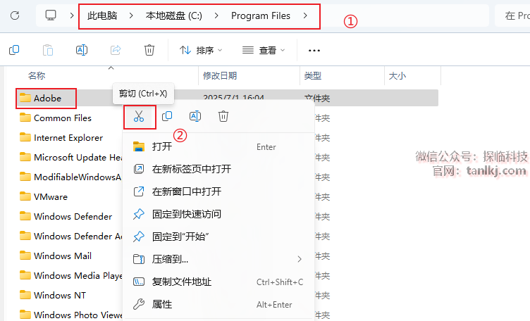 如需更改软件安装路径,电脑需重启,然后打开路径:C:\Program Files,剪切文件【Adobe】。