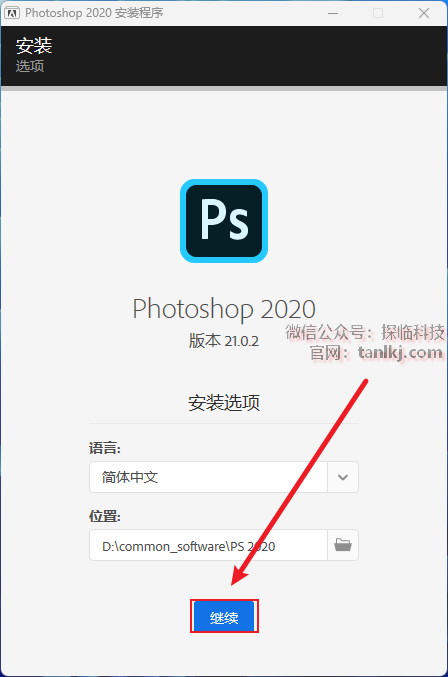 更改软件默认的安装位置,如不需更改,直接点击【继续】即可。