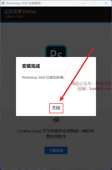 安装完成后,点击【关闭】。