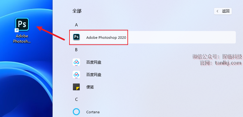 找到软件【Adobe Photoshop 2020】,将其拖至桌面创建快捷方式。