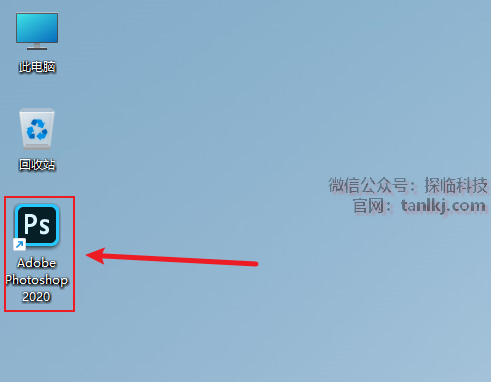 在桌面,双击运行软件【Adobe Photoshop 2020】。