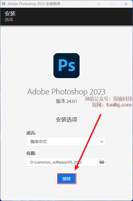 更改软件默认的安装位置,如不需更改,直接点击【继续】即可。