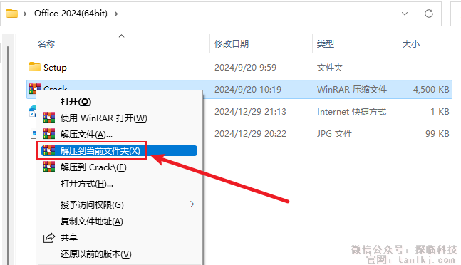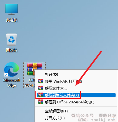 解压下载后的软件包。右键软件包,点击【解压到当前文件夹】(win11系统需先点击【显示更多选项】)。