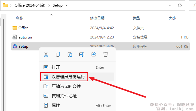 右键安装程序【Setup】,点击【以管理员身份运行】。