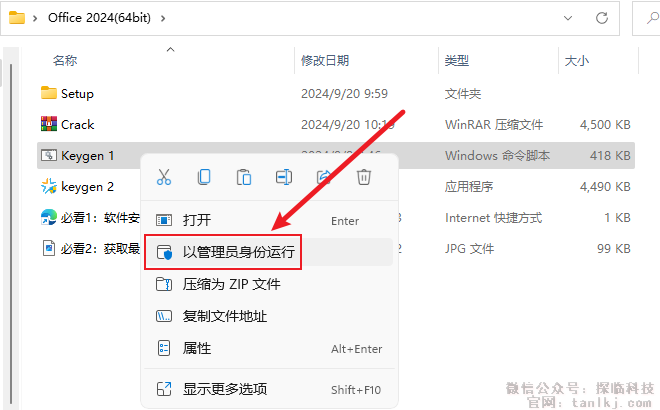 右键解压出来的程序【Keygen 1】,点击【以管理员身份运行】。