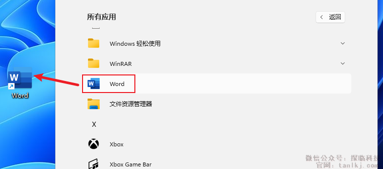 找到Office产品图标【Word】,将其拖至桌面,创建快捷方式(其余Office产品也可用同样方式创建快捷方式,如:Excel、PPT)。