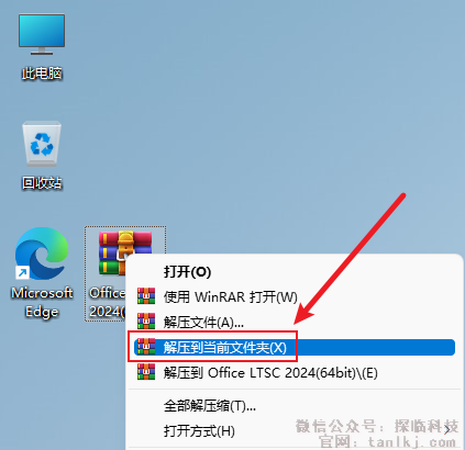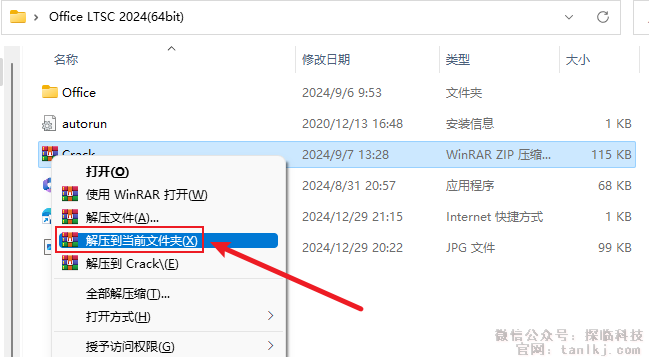 解压下载后的软件包。右键软件包,点击【解压到当前文件夹】(win11系统需先点击【显示更多选项】)。