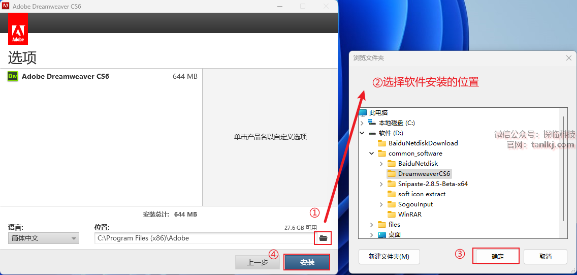 ②选择软件安装的位置,安装路径中不能包含有任何中文字符;