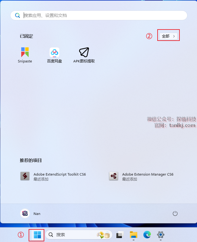 ①点击【开始】图标;