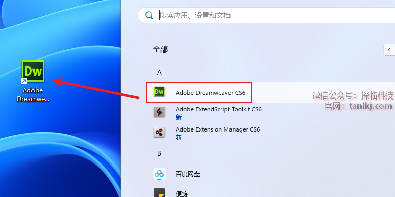 找到软件【Adobe Dreamweaver CS6】,并将其拖至桌面创建快捷方式。