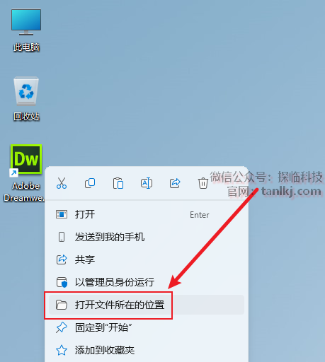 在桌面,右键软件【Adobe Dreamweaver CS6】,点击【打开文件所在的位置】。