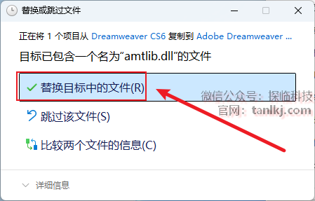 点击【替换目标中的文件】。