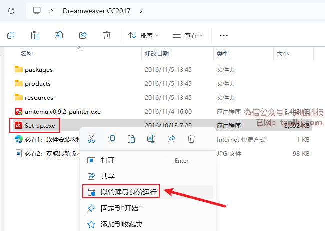 打开解压后的文件件,右键程序【Set-up】,点击【以管理员身份运行】。